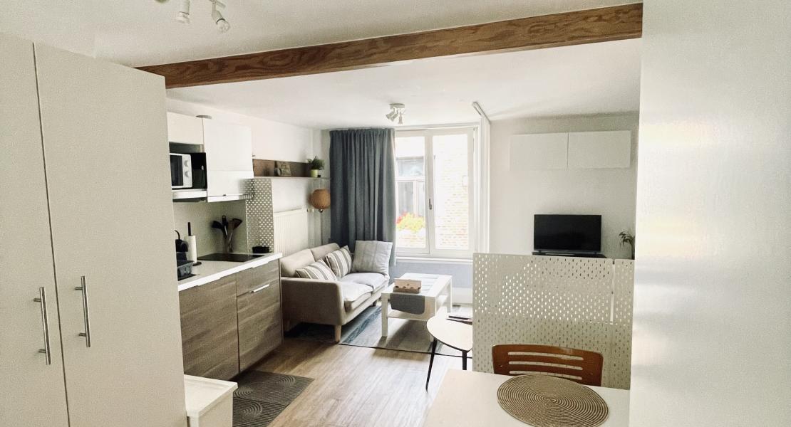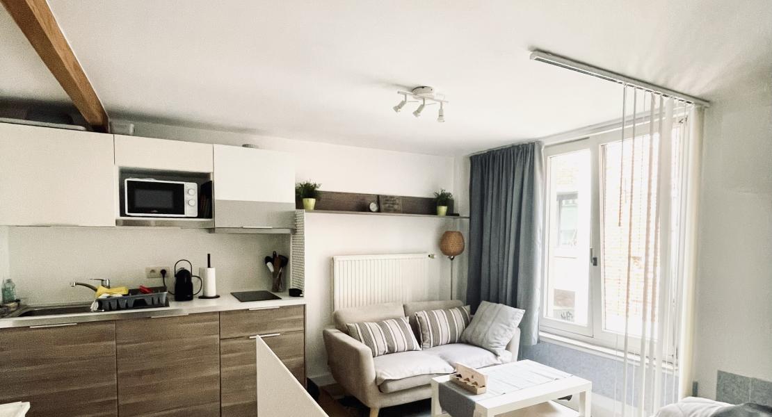 Cozy furnished flat 2nd floor in charming townhouse. Located in one of the nicest area in Brussels center (Marolles-Sablon-Louise area), 12 min walk to Central /Midi TGV Eurostar THALYS train station, 20-25 minutes’ walk from EU institutions (5 min with Metro), and very well deserved by public transportation (at 50 m >bus 27 directly to EU instit. pl de Luxembourg).