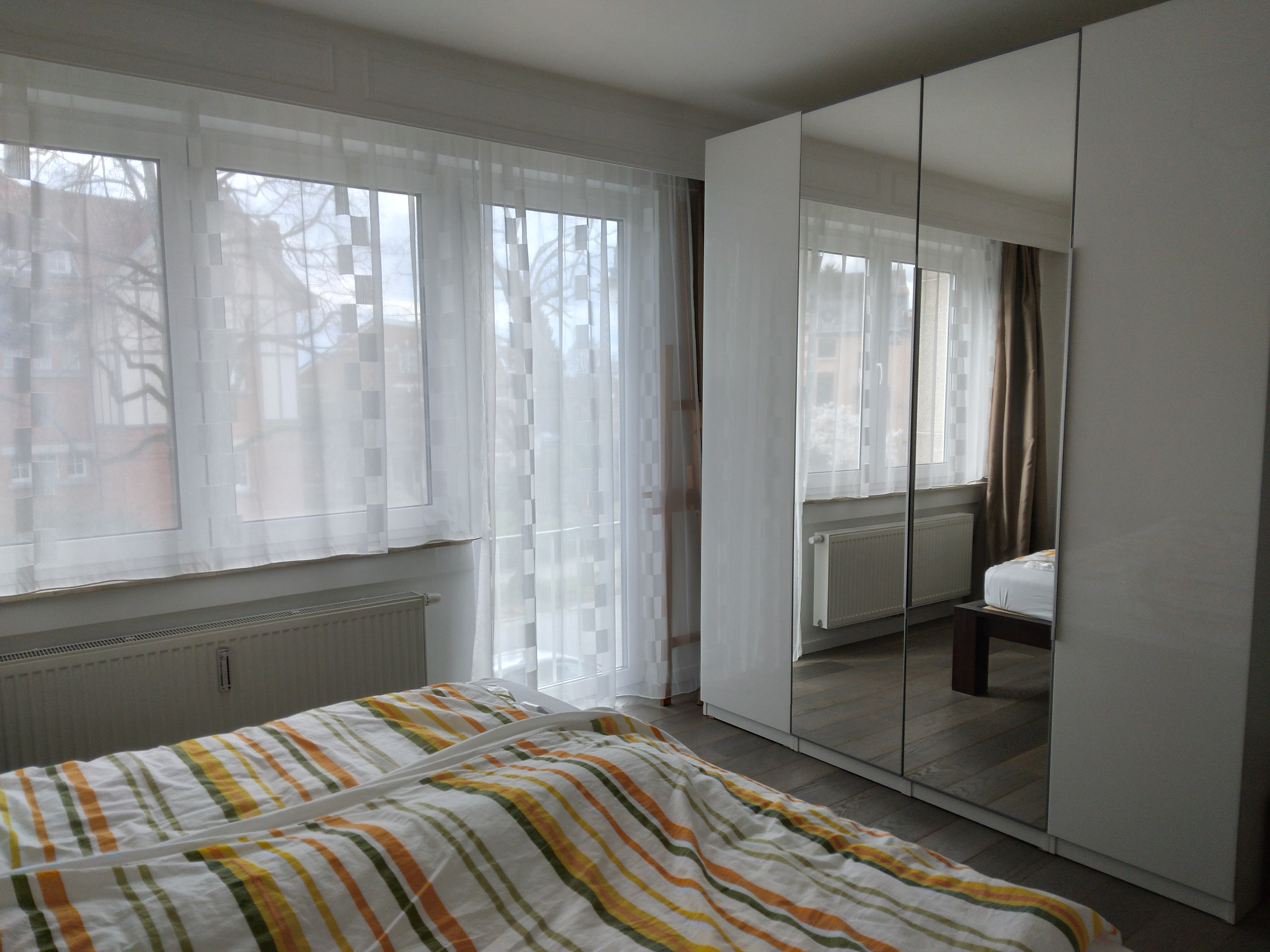 The apartment is spacious, bright, there is no vis-a-vis, filled with sunlight during the whole day, it offers perfect peace, surrounded with beautiful trees.