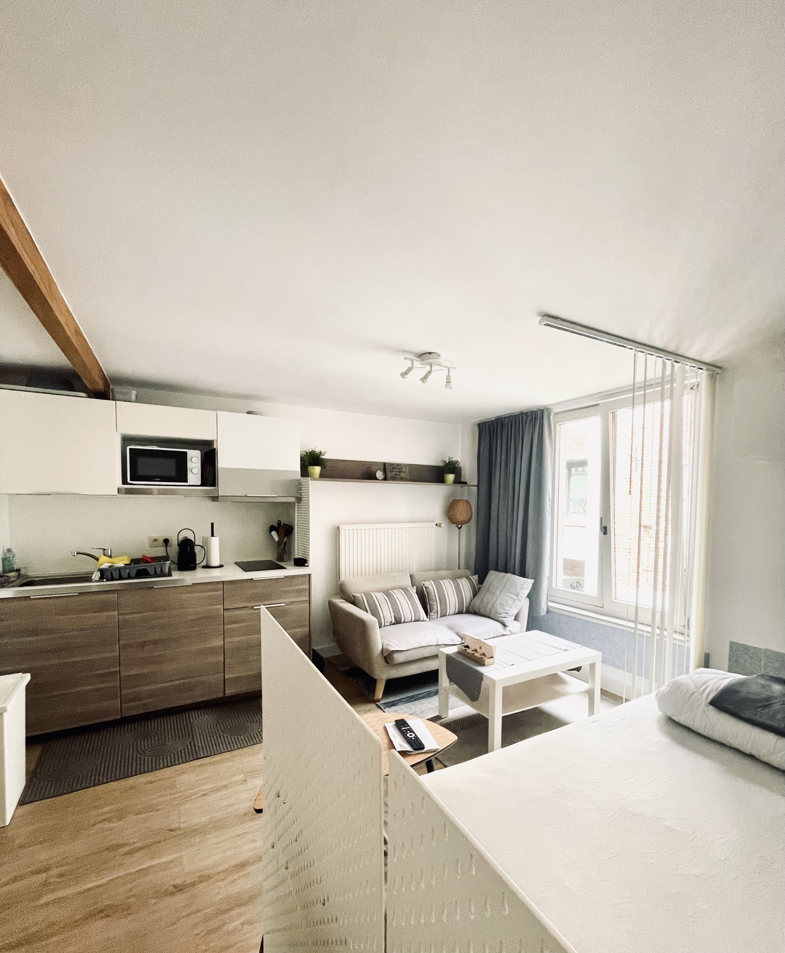Cozy furnished flat 2nd floor in charming townhouse. Located in one of the nicest area in Brussels center (Marolles-Sablon-Louise area), 12 min walk to Central /Midi TGV Eurostar THALYS train station, 20-25 minutes’ walk from EU institutions (5 min with Metro), and very well deserved by public transportation (at 50 m >bus 27 directly to EU instit. pl de Luxembourg).