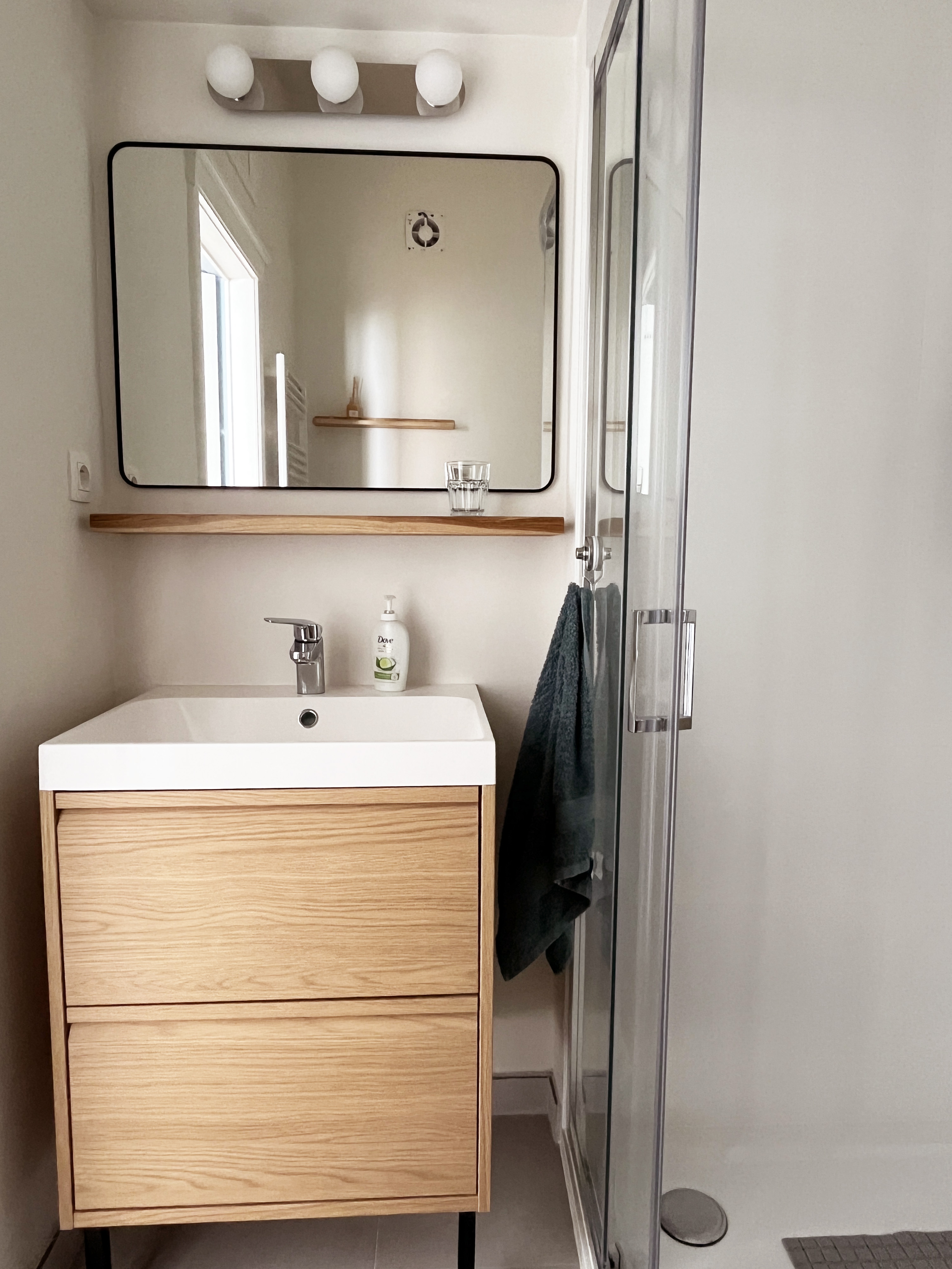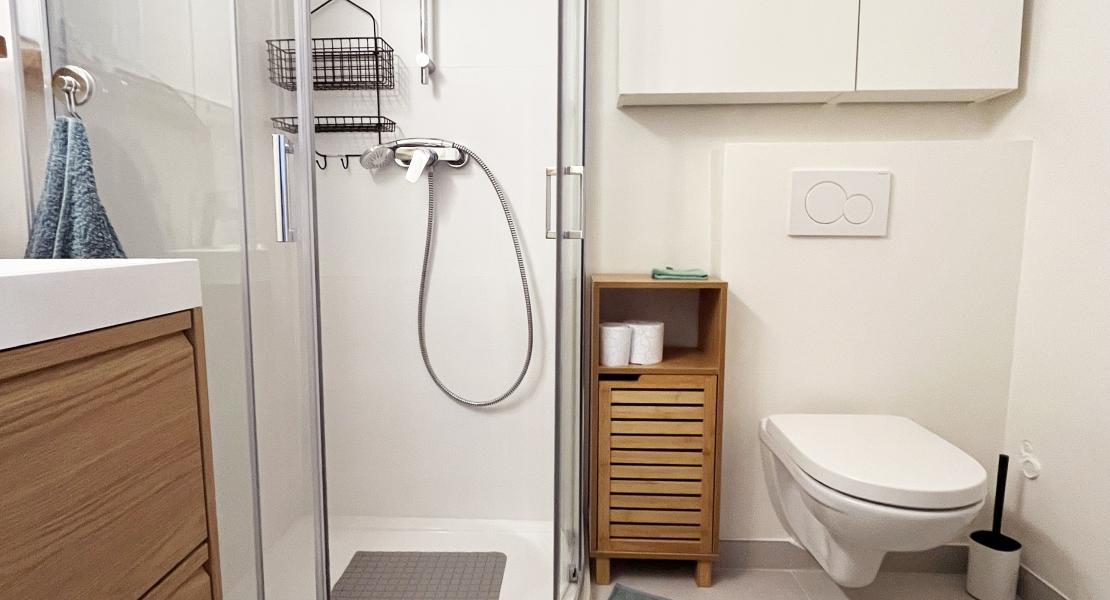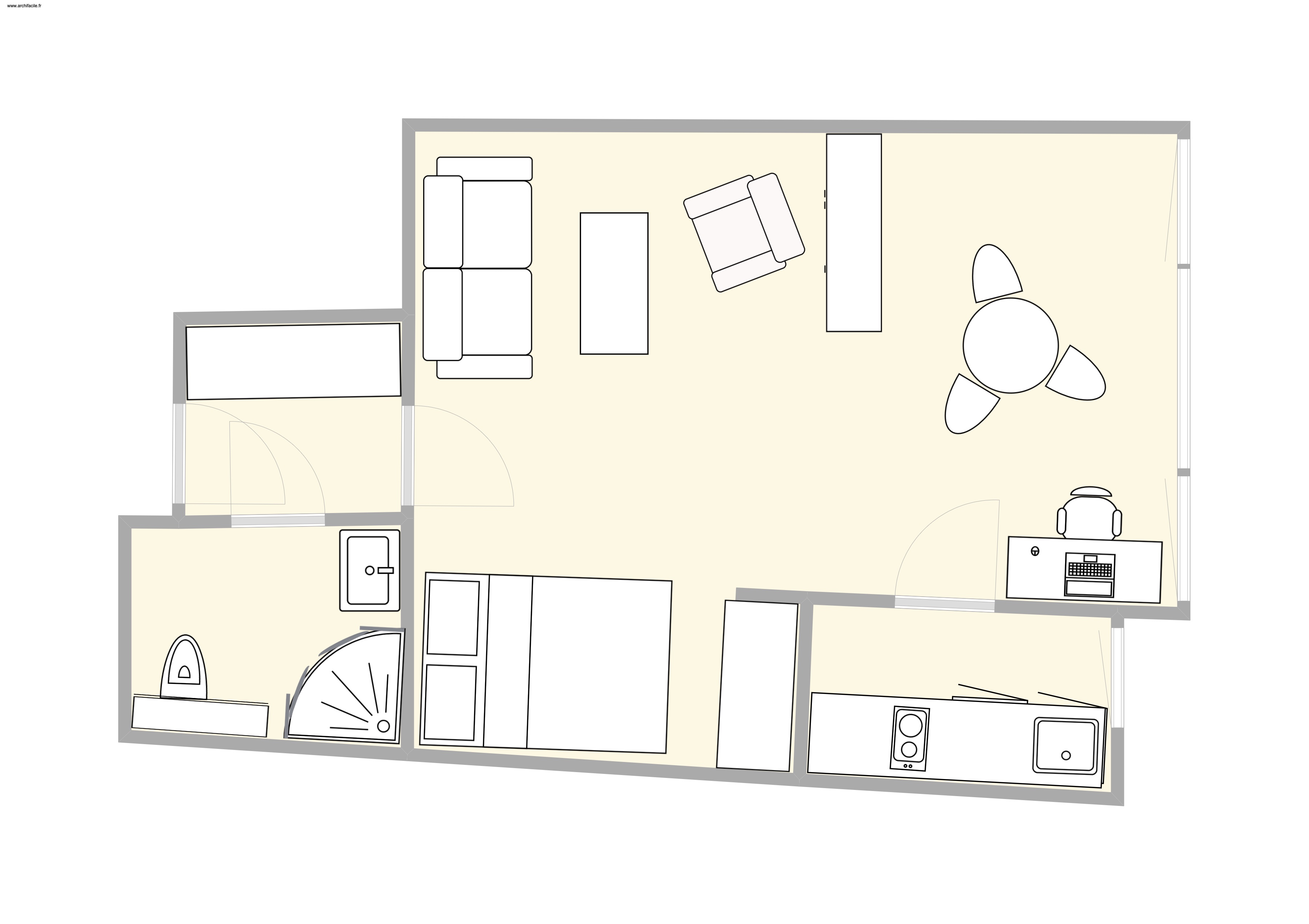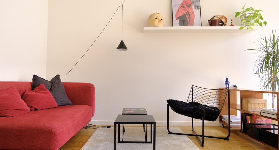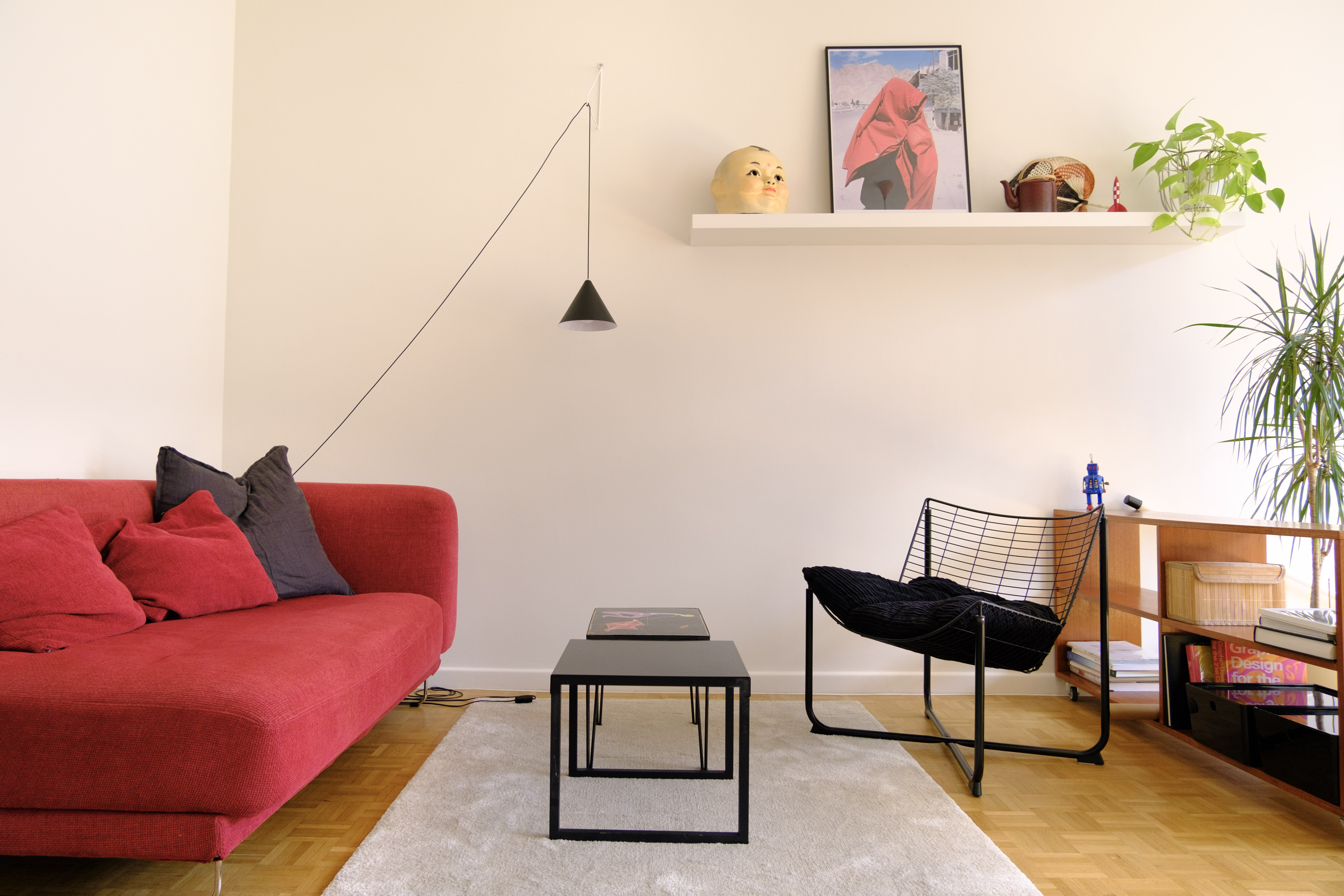 The furnished studio consists of a large and bright room and a small bedroom area, with a double bed (140x200), a comfy sofa, dinner table and desk, a modern shower room with toilet, plenty of storage space, an equipped kitchen (induction hob, microwave, fridge , filter coffee maker, kettle, toaster, and all the necessary kitchen utensils). A washing machine is also available. No oven, no AC, no space inside to store for bicycle.